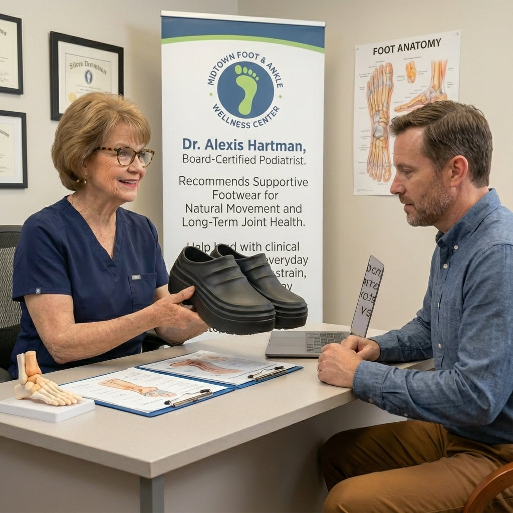 Our footwear is trusted by Dr. Alexis Hartman, a board-certified podiatrist at the Midtown Foot & Ankle Wellness Center. With extensive experience treating chronic foot pain, alignment issues, and mobility limitations, Dr. Hartman recommends supportive footwear that promotes natural movement and long-term joint health.